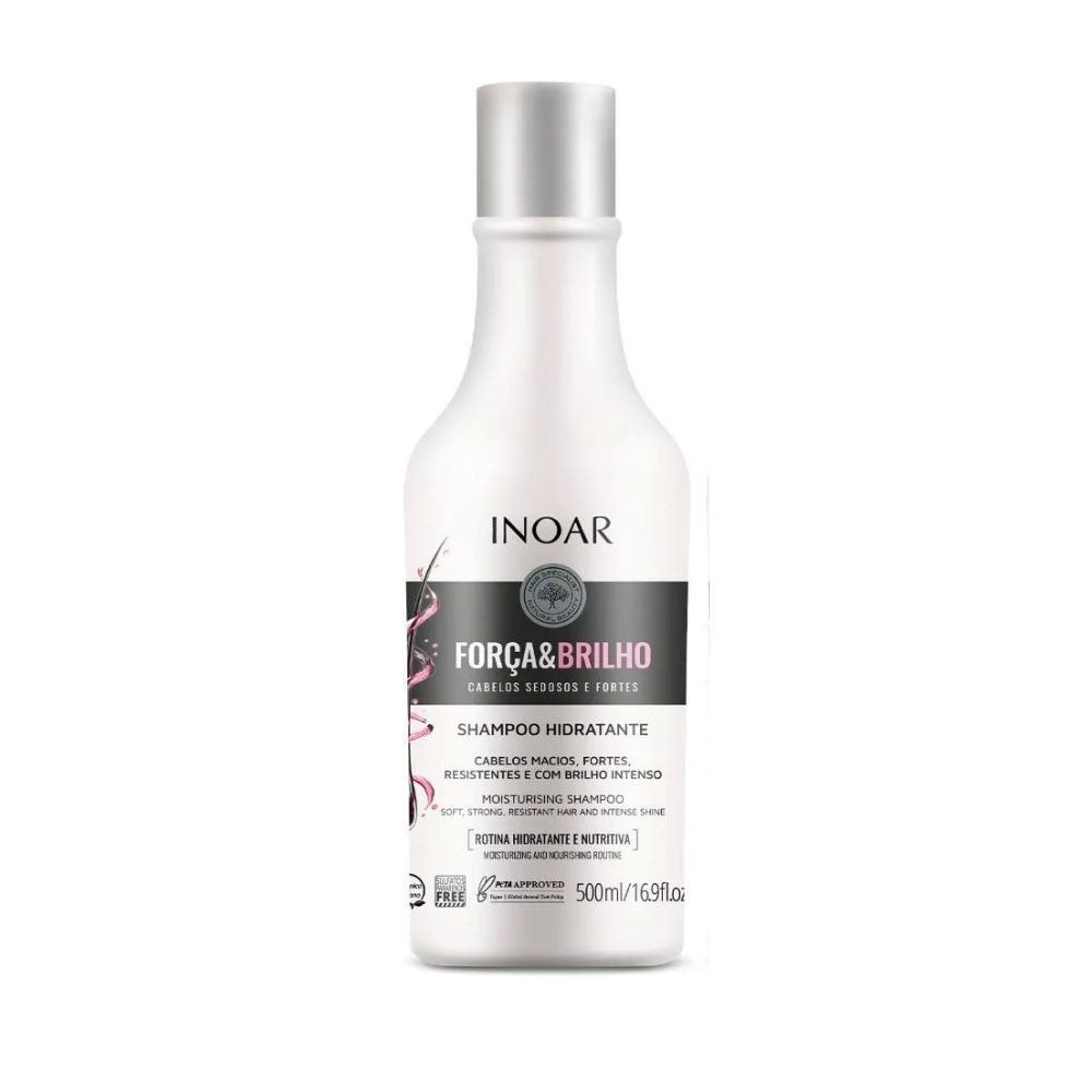 O Inoar Força e Brilho apresenta uma poderosa fórmula vegana que revitaliza e fortalece os fios, e garante cabelos mais fortes, brilhantes e macios ao toque, com redução visível de frizz, opacidade, aspereza e pontas duplas.